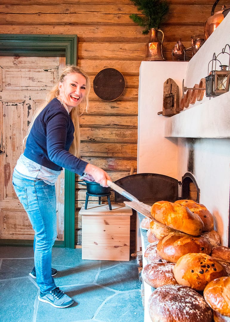 Inger Kristin i sving ved bakerovnen.