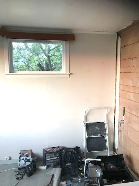 Så, sett utenfra: Liggende bord-kledning, tømmer stavlaft ca 10 cm..(?), huntonittplater ca 1,5 cm, porøs papirtapet som er malt over Nå er jeg akkurat i gang med å etterisolere stuen. Jeg får ulike råd… og er rådvill og har lite tid.