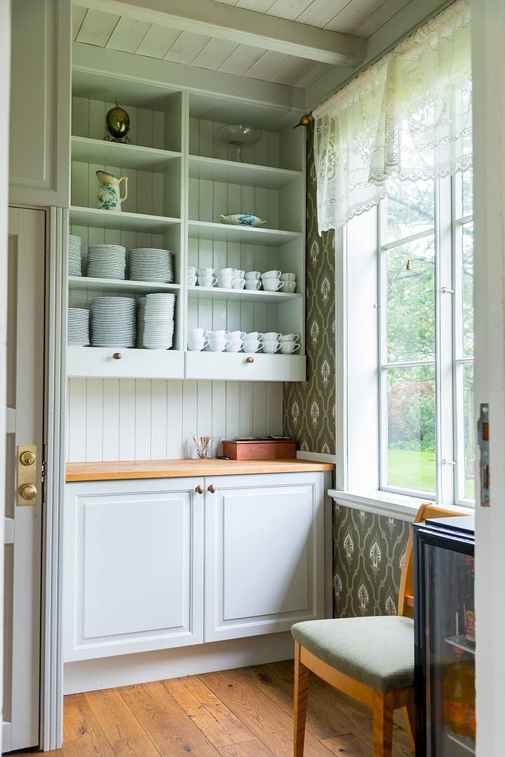 Fra den nybygde anretningen i gammel stil. Herfra er det matheis ned til kjøkkenet, som ligger i kjelleren.