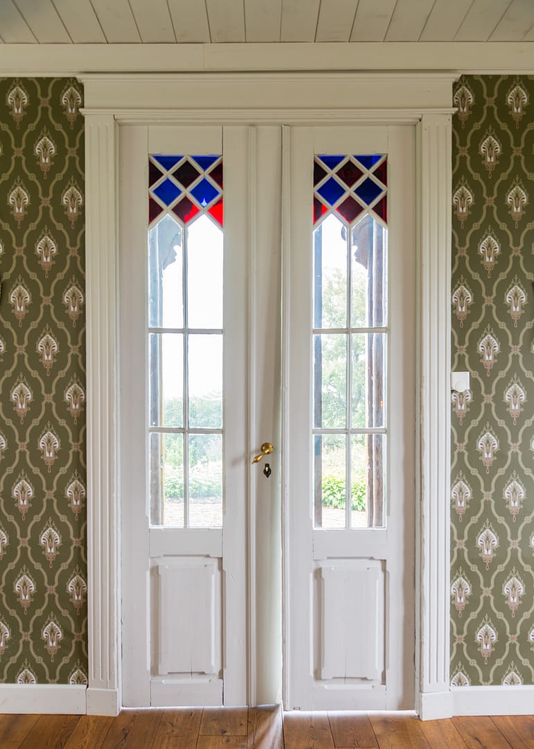 – Per Ivar tok et vindusrestaureringskurs og har satt i stand alle de gamle vinduene. Det var mange knuste ruter og siden de er så store var det vanskelig å finne gammelt glass som passet. Vi ønsket oss ekte vare og dermed ble dette en god løsning, selv om prisen havnet på 3000 kr per m2. Så det er ikke lov med ballspill rett utenfor her nå, ler Ingebjørg.