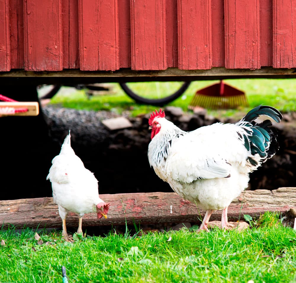 Familien har åtte høns på tunet.