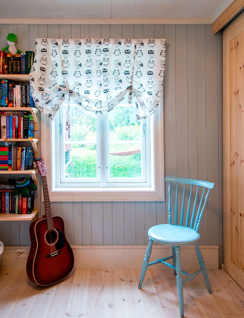 Anes soverom er malt med linolje i fargen «Moln 1» fra Enetorpets Färg.
