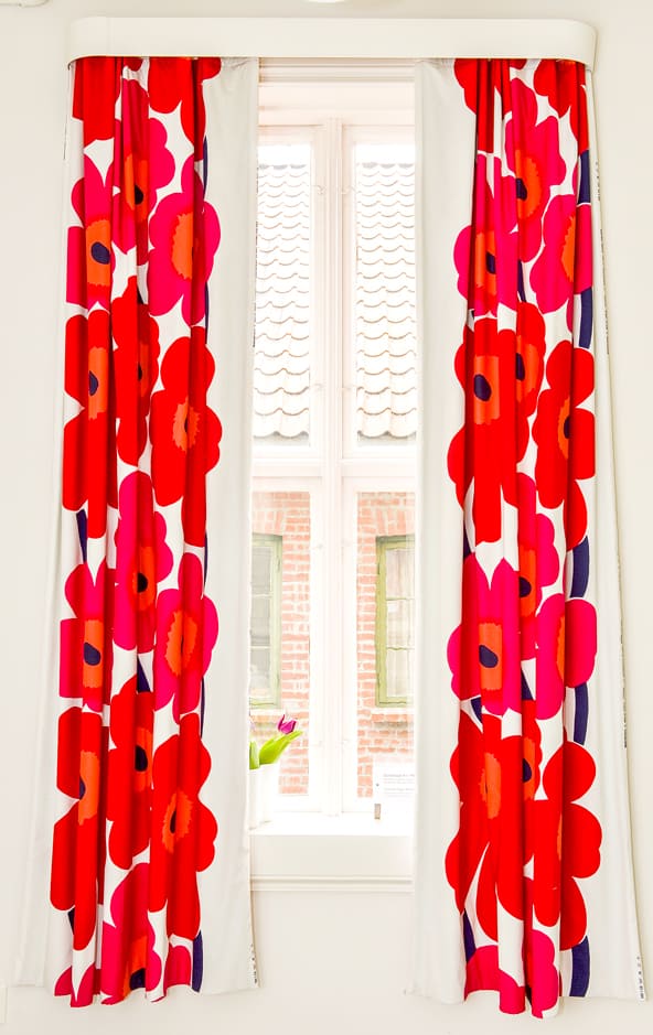 Marimekkos «Unikkomønster» designet av den finske designeren Maija Isoloa i 1964 var et populært gardinstoff. Det var spesielt datidens akademikere som omfavnet dette mønsteret. «Unikko» fikk en renessanse på 2000-tallet. Foto: Norsk Folkemuseum