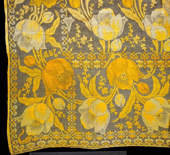 I 1809 ble kniplemaskinen oppfunnet og få år etter, i 1813, kom Jacquardveven. Disse nyvinningene revolusjonerte tekstilindustrien og masseproduksjonen av tekstiler tar til for fullt. I Henrik Ibsens leilighet i Arbinsgate henger det nøyaktige kopier av forfatterens eksklusive silkegardiner.