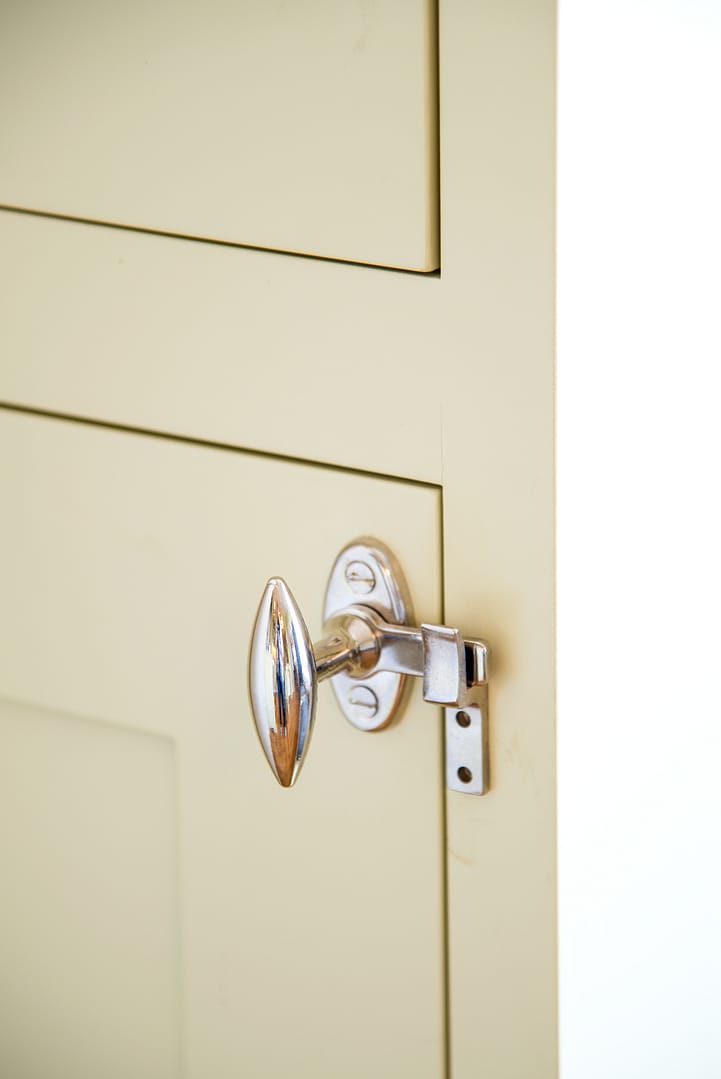 Klassisk skapdørvrider fra bygnings-vernbutikken Molo gir nostalgisk preg.